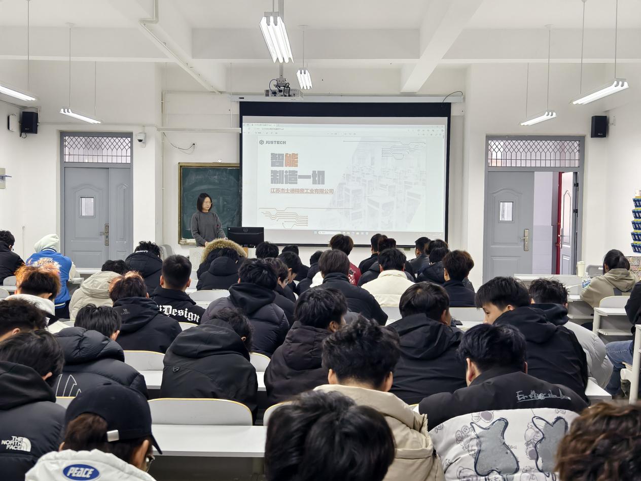 宣讲会上,江苏杰士德精密工业有限公司企业负责人全面介绍了企业的发展历程、企业规模及岗位需求,并从需求岗位的职责要求、薪资待遇、生活条件、员工考核及晋升机制等方面,为同学们进行了深入解读。宣讲会现场气氛热烈,同学们就实习岗位、技术要求、发展前景等问题与企业进行了互动交流。